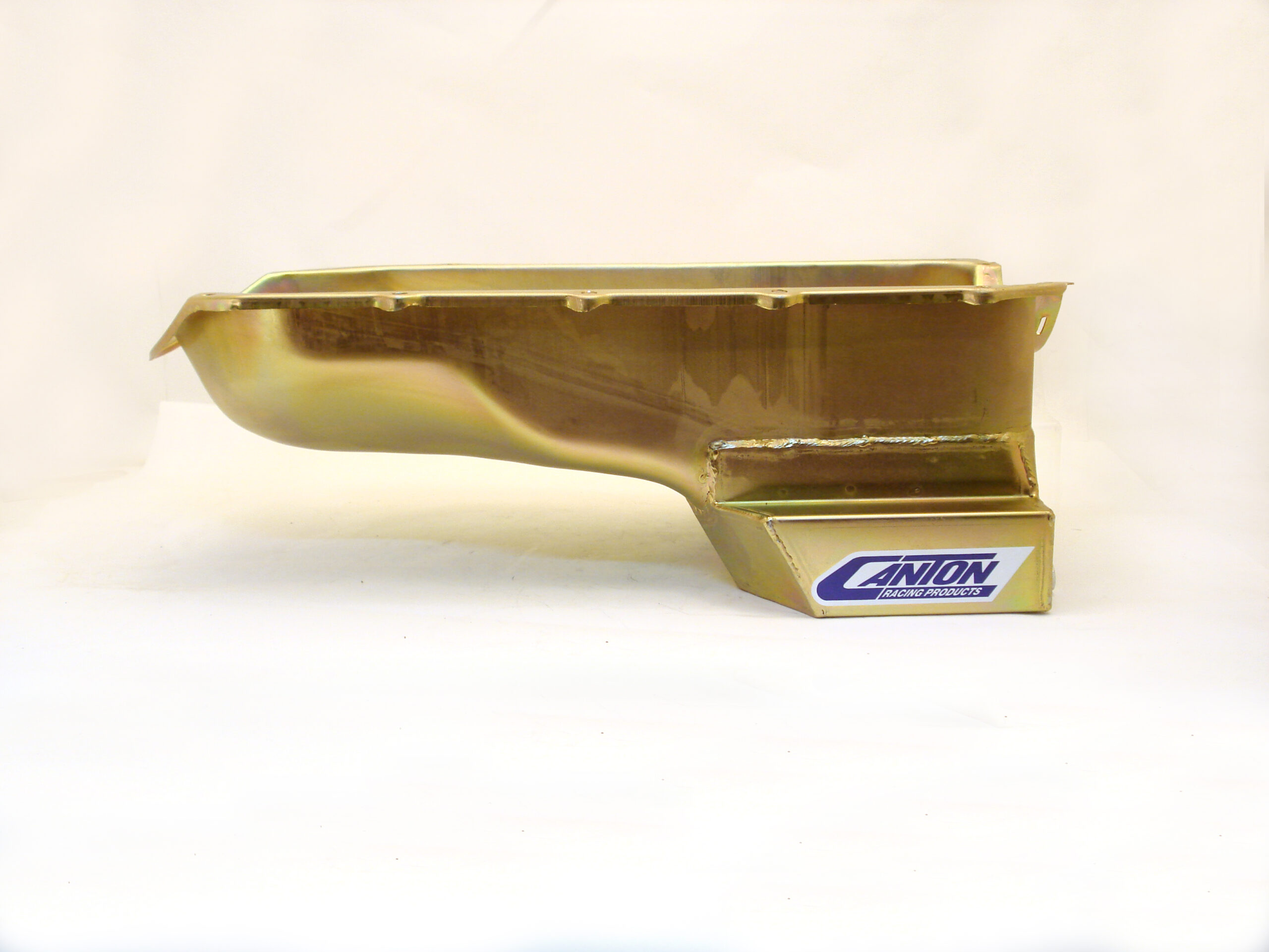 Canton Racing road race oil pans feature their competition baffling system of trap door baffles and/or slosh baffles. These systems flow oil to the pickup compartment and then keep it from flowing or sloshing away from the pickup during turns, acceleration and braking. Their wide, low-profile sumps deliver maximum oil capacity and ground clearance. Many pans also include provisions for an optional pan mounted dipstick and a magnetic drain plug.
