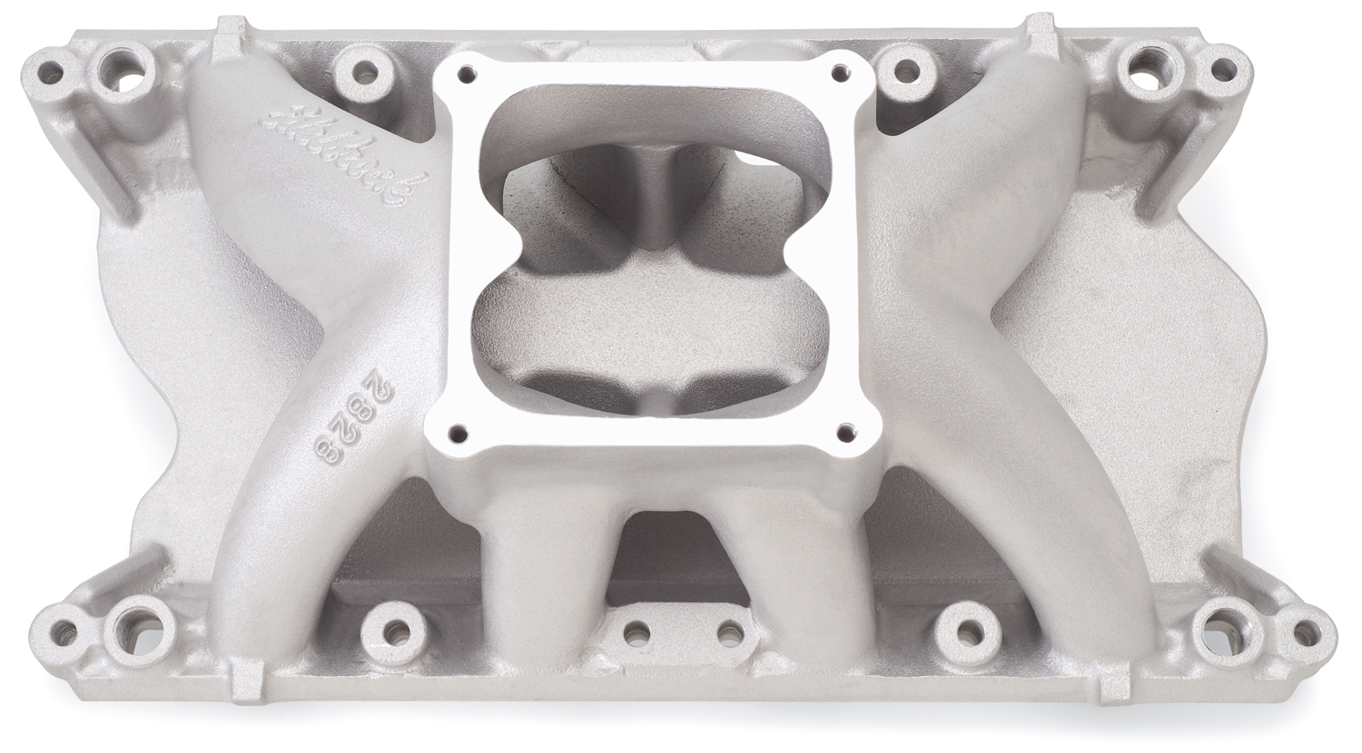 Developed in conjunction with noted Ford drag racer Billy Glidden, this manifold is a larger version of our popular Super Victor 351W. Featuring a 4500 Series carb pad, it is intended for high RPM and large displacement Windsor headed small-block Fords with a 9.5″ deck height. The runner area has been enlarged to 3.6 square inches and the plenum has been increased to produce higher RPM power. To maintain optimum runner shape and location, the front water cross-over has been eliminated, but water fittings have been provided on the intake flange for external plumbing of a thermostat if desired. The carburetor pad height on this new manifold is only 0.250″ taller than the 2924, making it ideal for single-carb all-out drag racing vehicles.