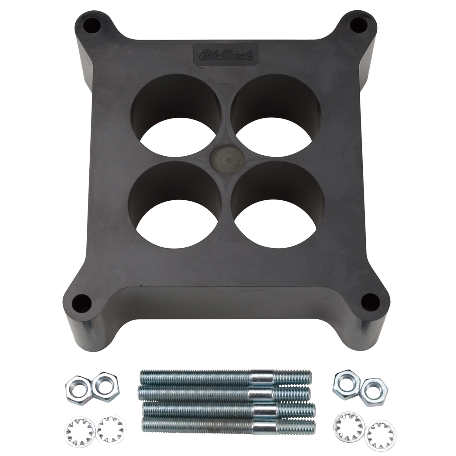 These Edelbrock carburetor spacers allows the carburetor to be spaced above the intake flange to increase plenum area for more torque and horsepower. They are available in aluminum and heat-insulating phenolic or wood fiber.