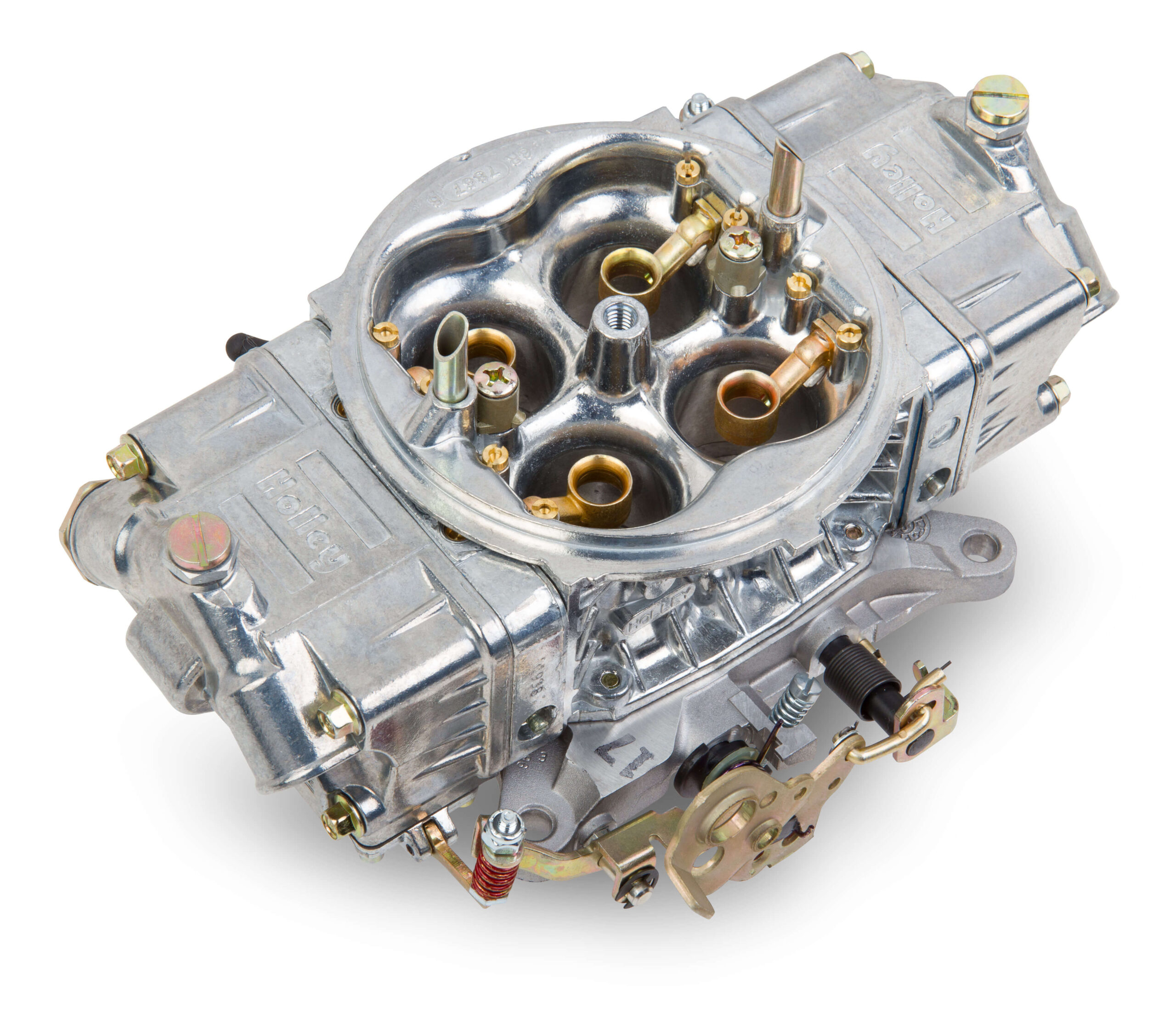Holley HP carburetors are the perfect choice for all types of motorsports. Supercharger HP carburetors are available in 600, 750 and 950 CFM and feature a contoured venturi inlet for balanced air flow, screw in air bleeds for precision tuning capabilities, high flow metering blocks and Dominator style fuel bowls which allow pluming from either side for ease of installation. Supercharger HP carburetors also have a unique capability that allows their power valves to reference the intake manifold vacuum below the supercharger. This allows the power valve to operate as it should, based off intake manifold vacuum. A power valve provides further enrichment to the main metering system under load (low vacuum) conditions. Holley HP carburetors are the standard for square bore race carburetors.