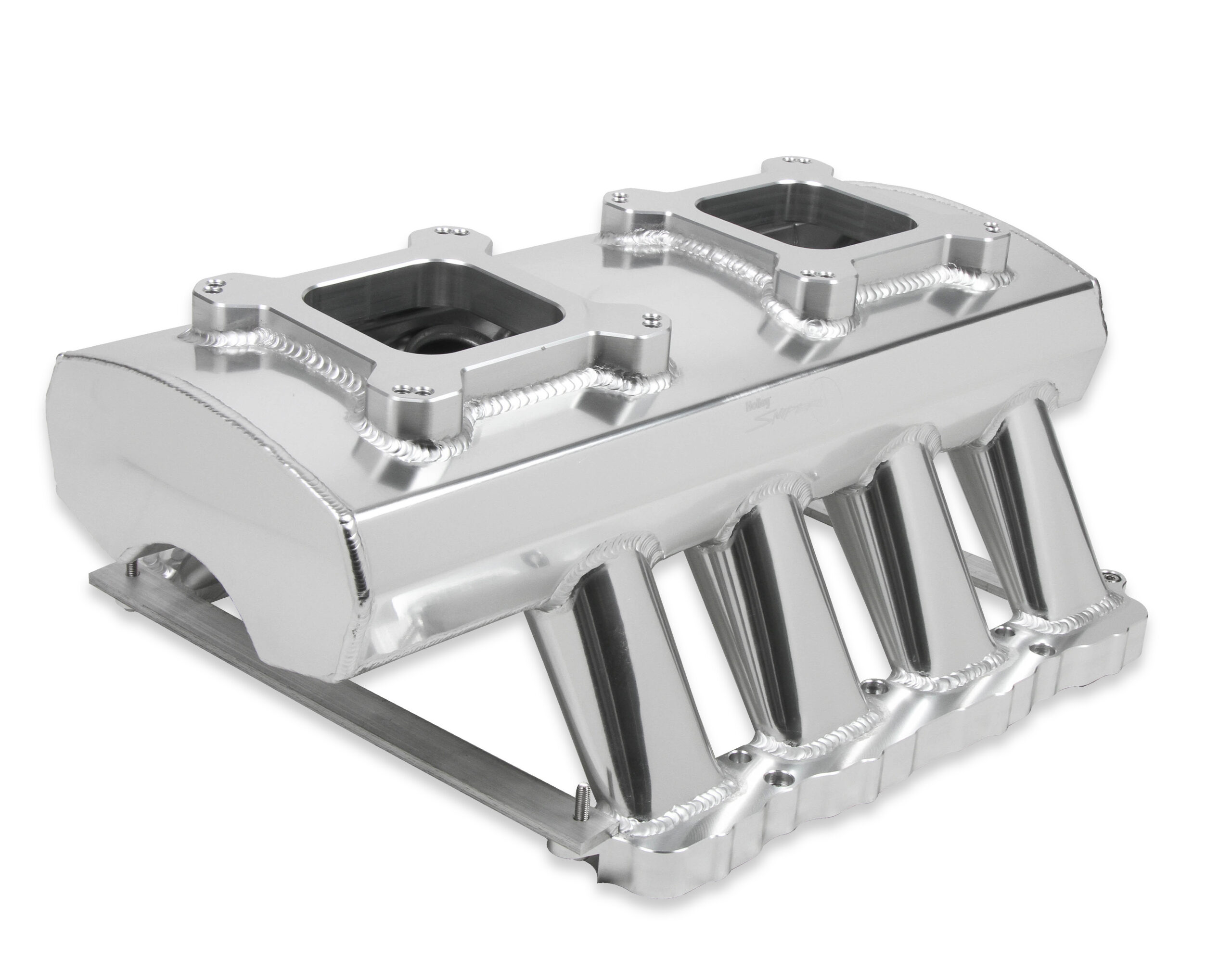 Holley Sniper continues to push the aftermarket by introducing fabricated carbureted and EFI intake manifolds for GM Small Block and LS along with Ford 4.6 Modular 3-valve and 5.0L Coyote engines. These performance sheet metal intakes are great looking and an excellent value compared to other fabricated intake manifolds. Each manifold is ready to bolt-on out of the box (including a high-flow fuel rail kit for EFI versions). These manifolds are precision fixtured and welded for a perfect fit and maximum structural integrity.